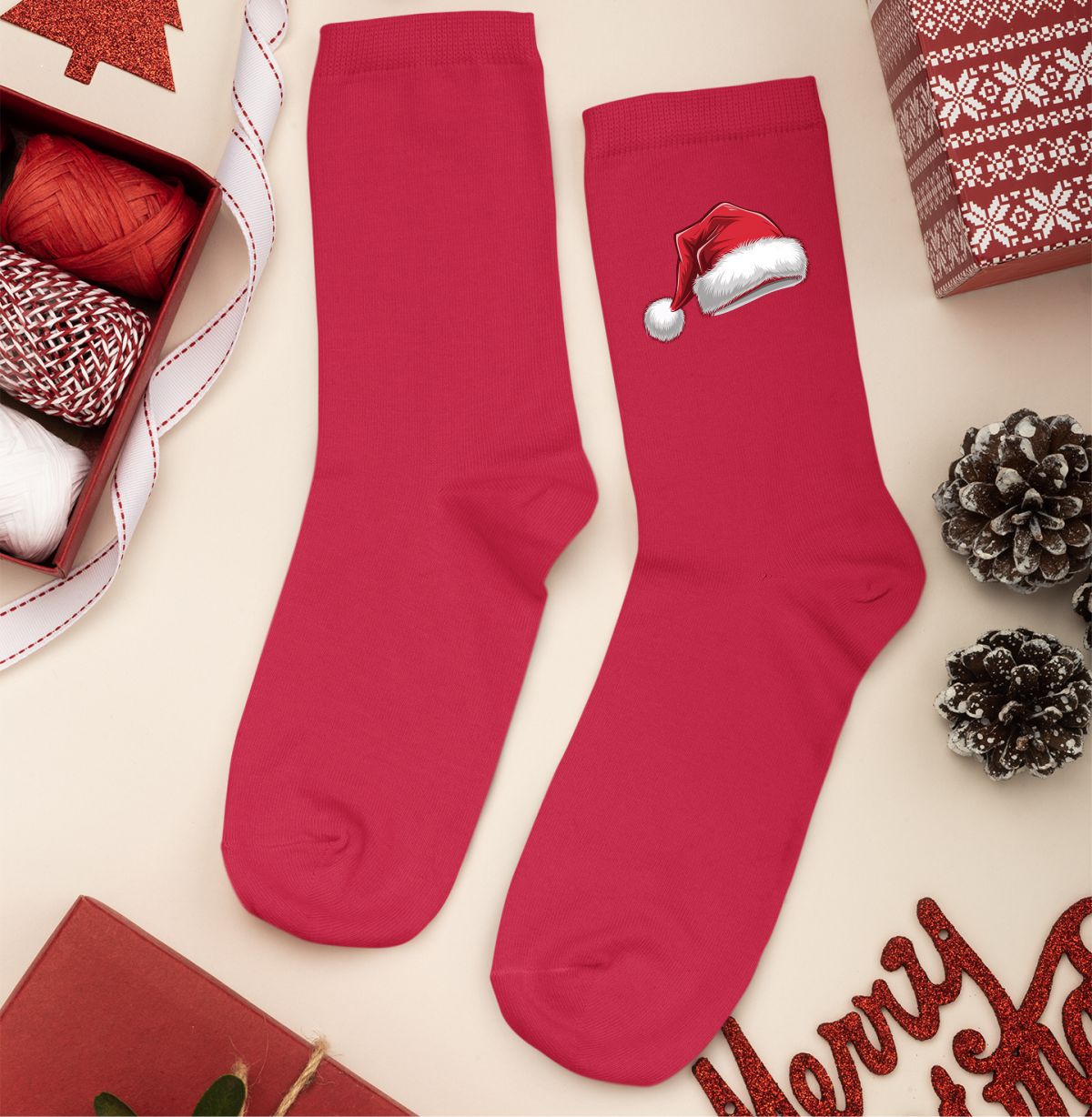 Raudonos Kalėdinės kojinės "Kalėdinis kepuriukas"
