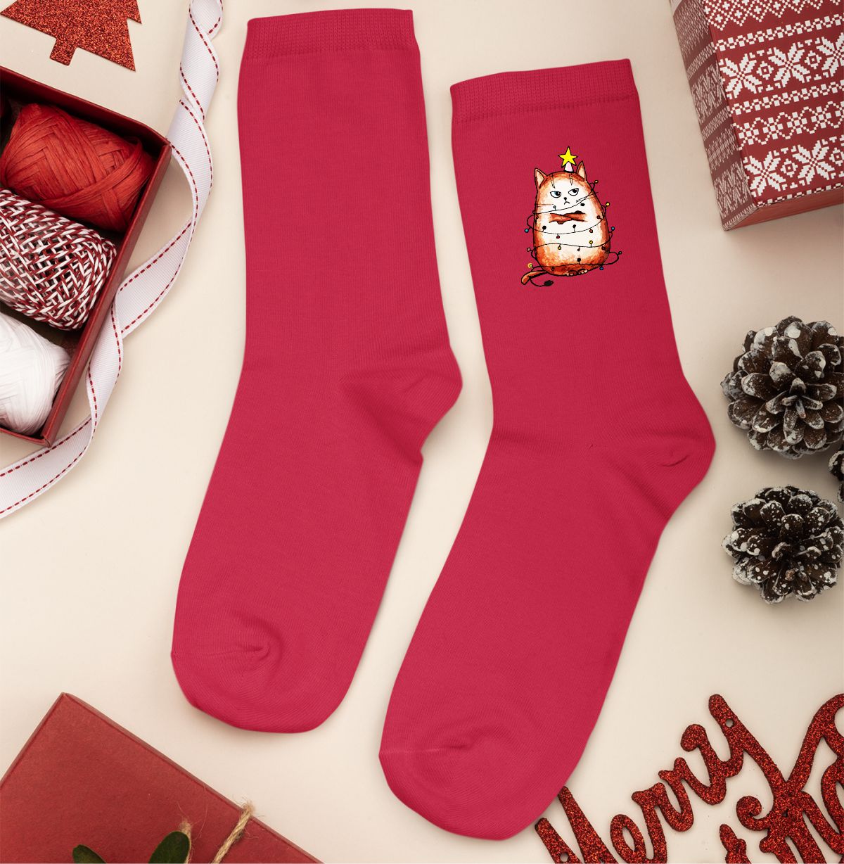 Raudonos Kalėdinės kojinės "Pikts katins"