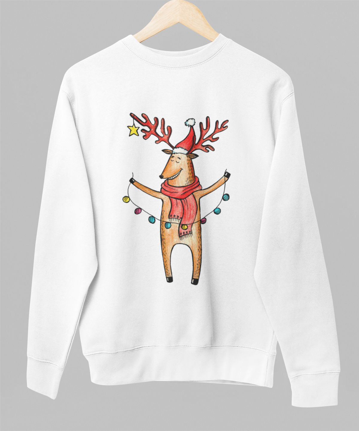 Baltas kalėdinis džemperis "Briedis" (XS, S, 2XL, 3XL dydis) JUODOJO PENKTADIENIO pasiūlymas!