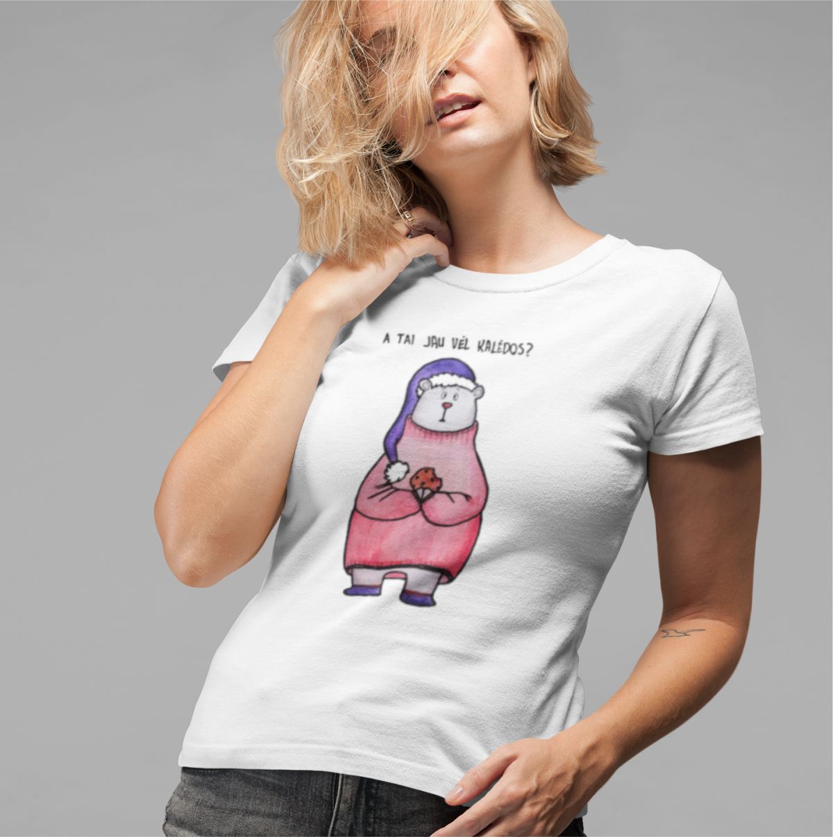 Balti moteriški marškinėliai "A tai jau vėl Kalėdos?" (XL dydis) JUODOJO PENKTADIENIO pasiūlymas!