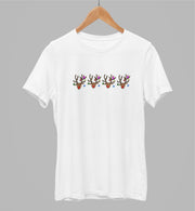 Balti UNISEX marškinėliai "Keturi briedžiukai" (XS dydis) JUODOJO PENKTADIENIO pasiūlymas!