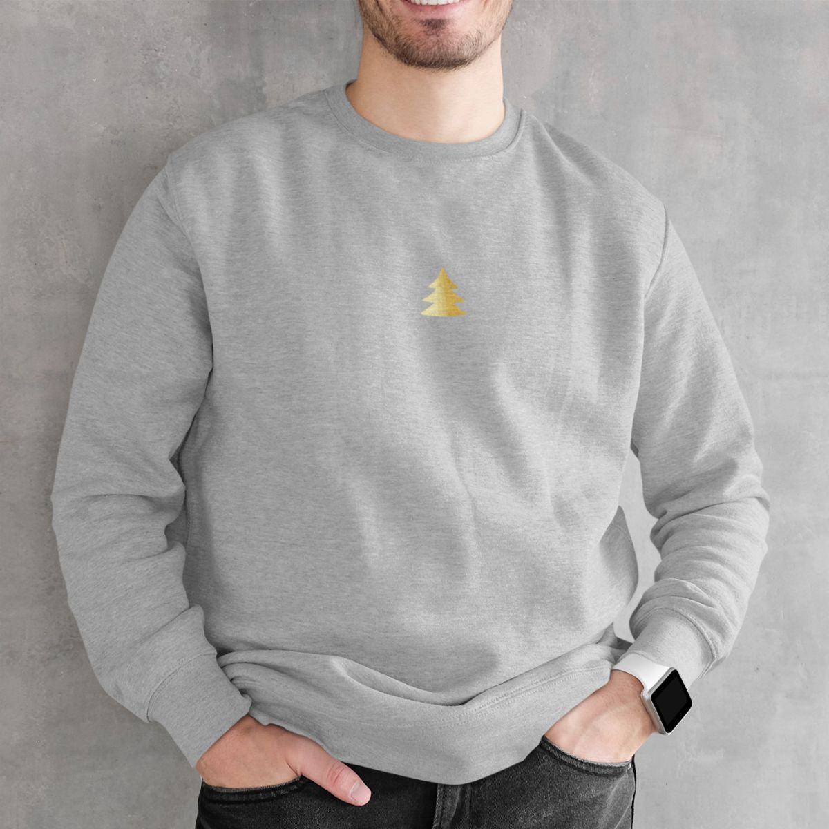 Pilkas kalėdinis UNISEX džemperis "Auksinė eglutė" (M dydis) JUODOJO PENKTADIENIO pasiūlymas!