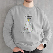 Pilkas UNISEX džemperis "Su Kalėdom, Miau" (XL dydis) JUODOJO PENKTADIENIO pasiūlymas!