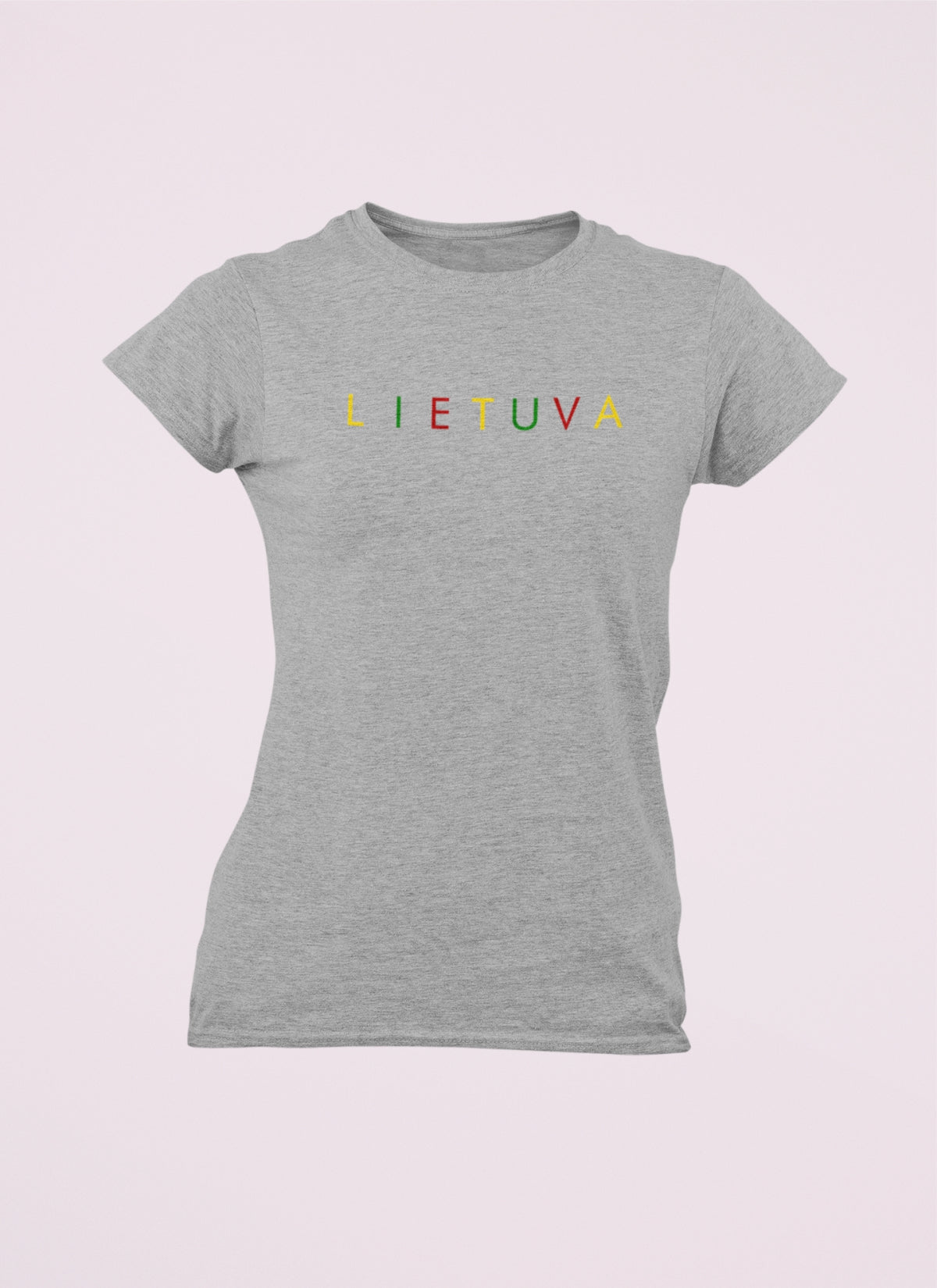 Pilki moteriški marškinėliai "Spalvota Lietuva"(S dydis) JUODOJO PENKTADIENIO pasiūlymas!