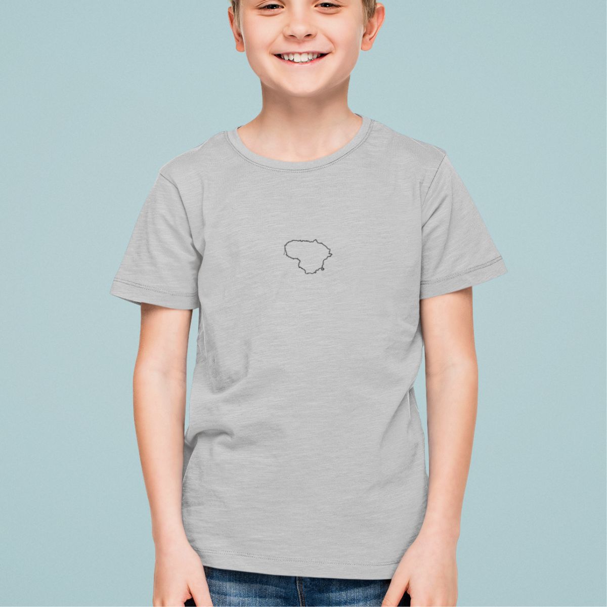 Pilki vaikiški marškinėliai "Lietuvos kontūrai" (10 metų) PAGAMINTA PREKĖ!