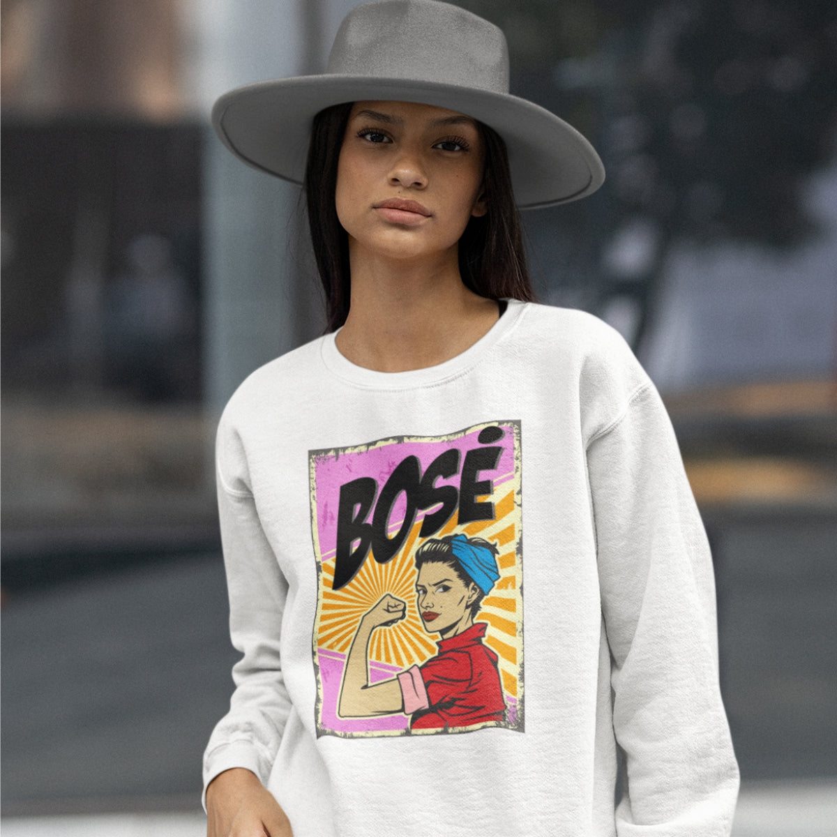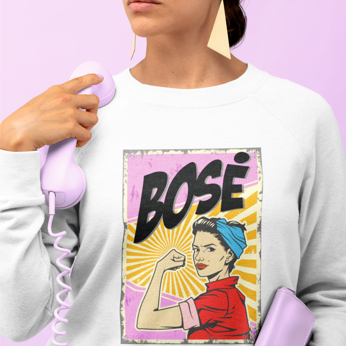 Baltas džemperis be kapišono "Pin up bosė"
