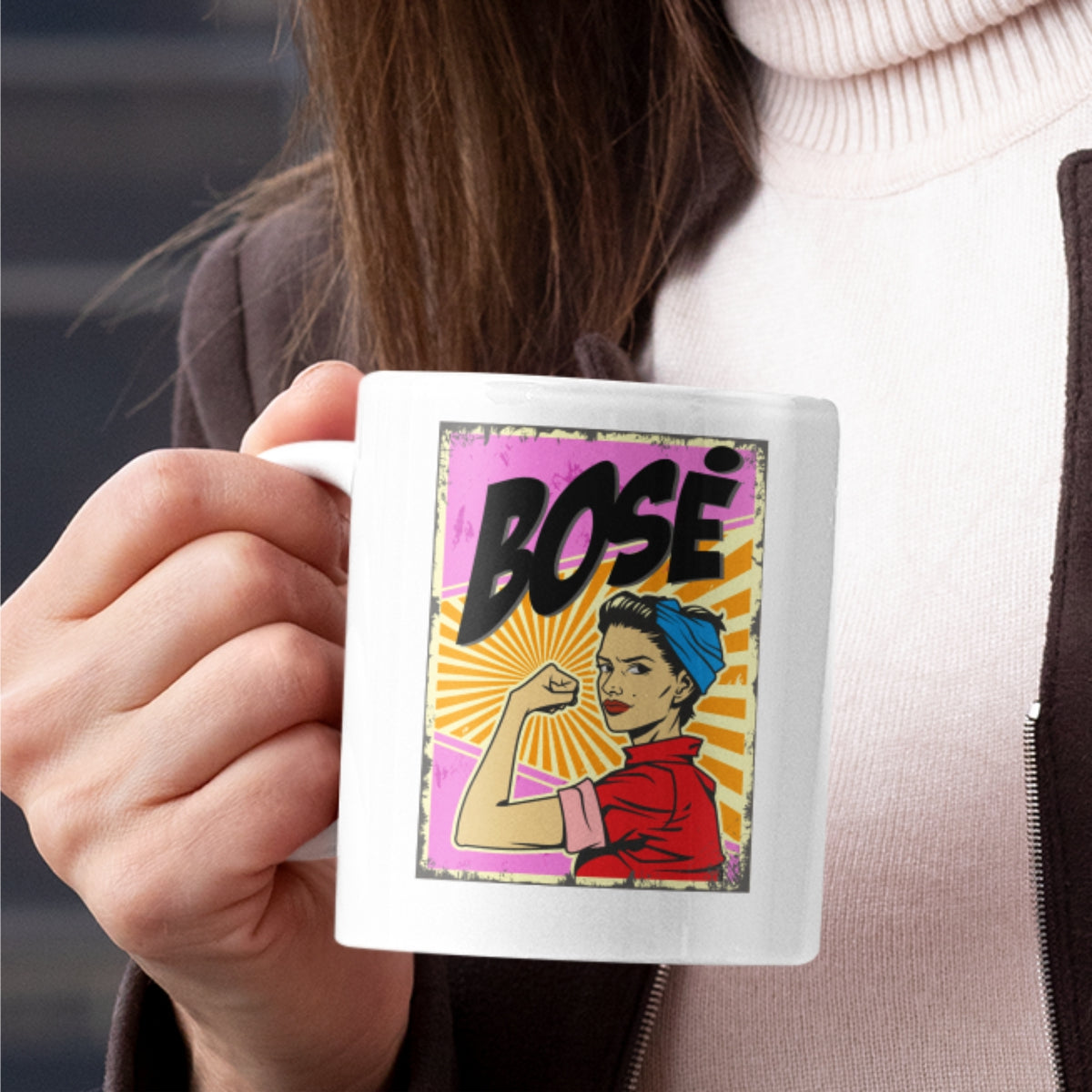 Puodelis su spauda "Pin up bosė"