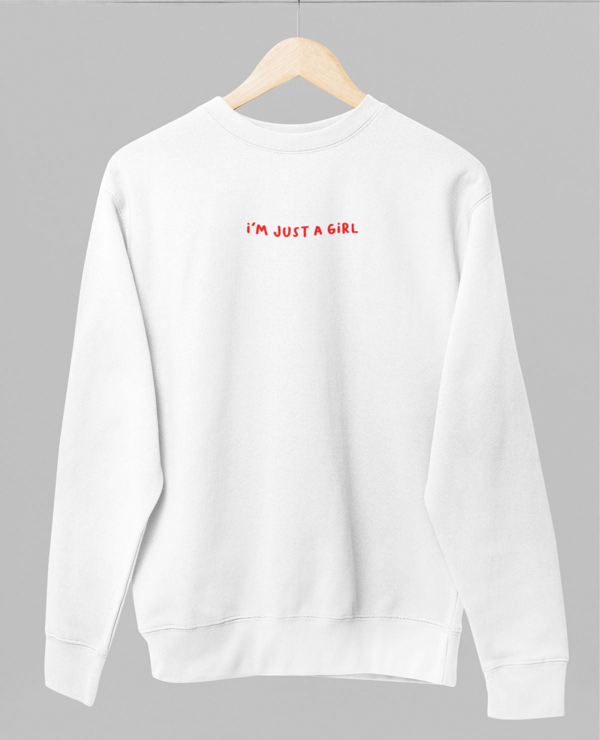 Baltas džemperis be gobtuvo "I'm just a girl"