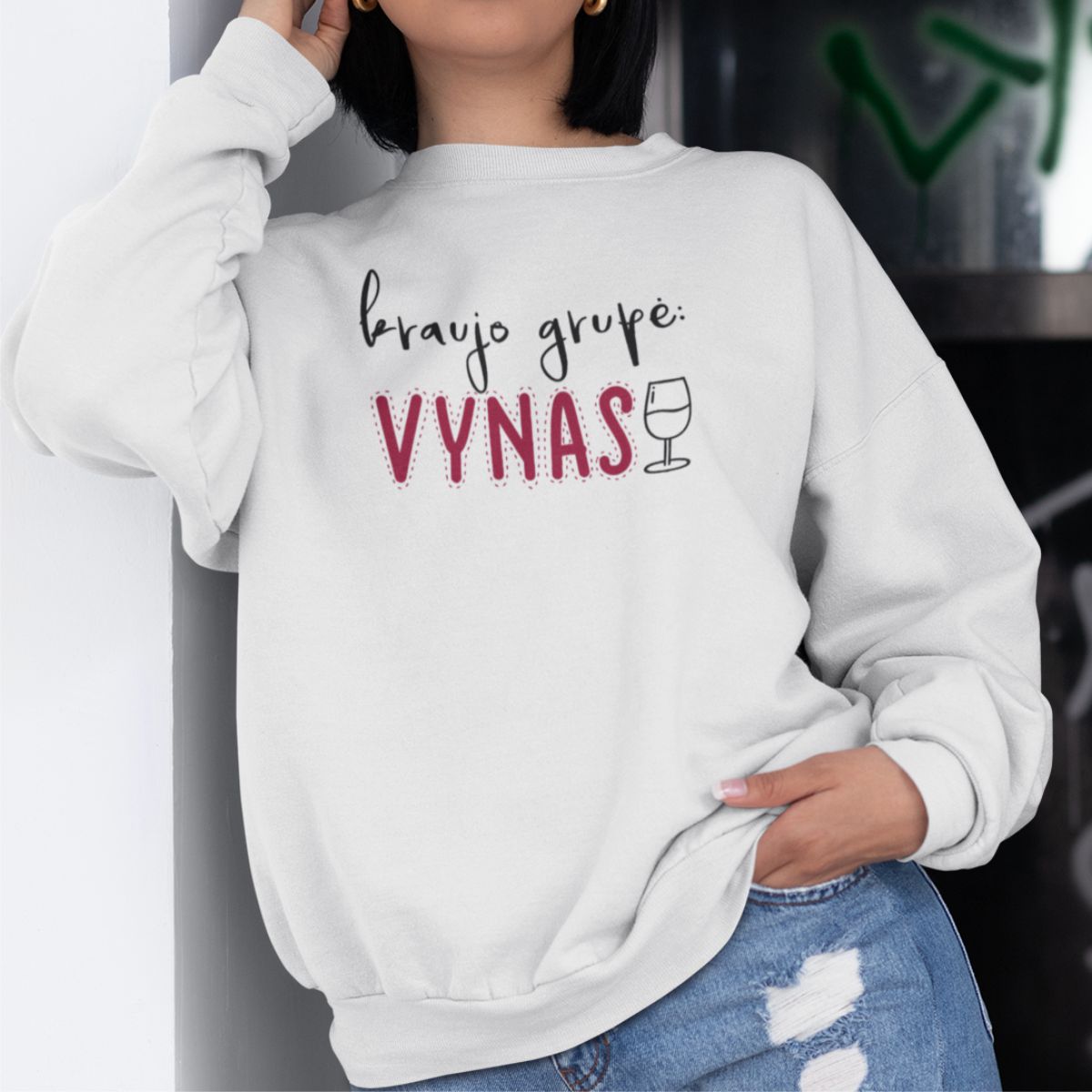 Baltas UNISEX džemperis be gobtuvo "Kraujo grupė vynas"