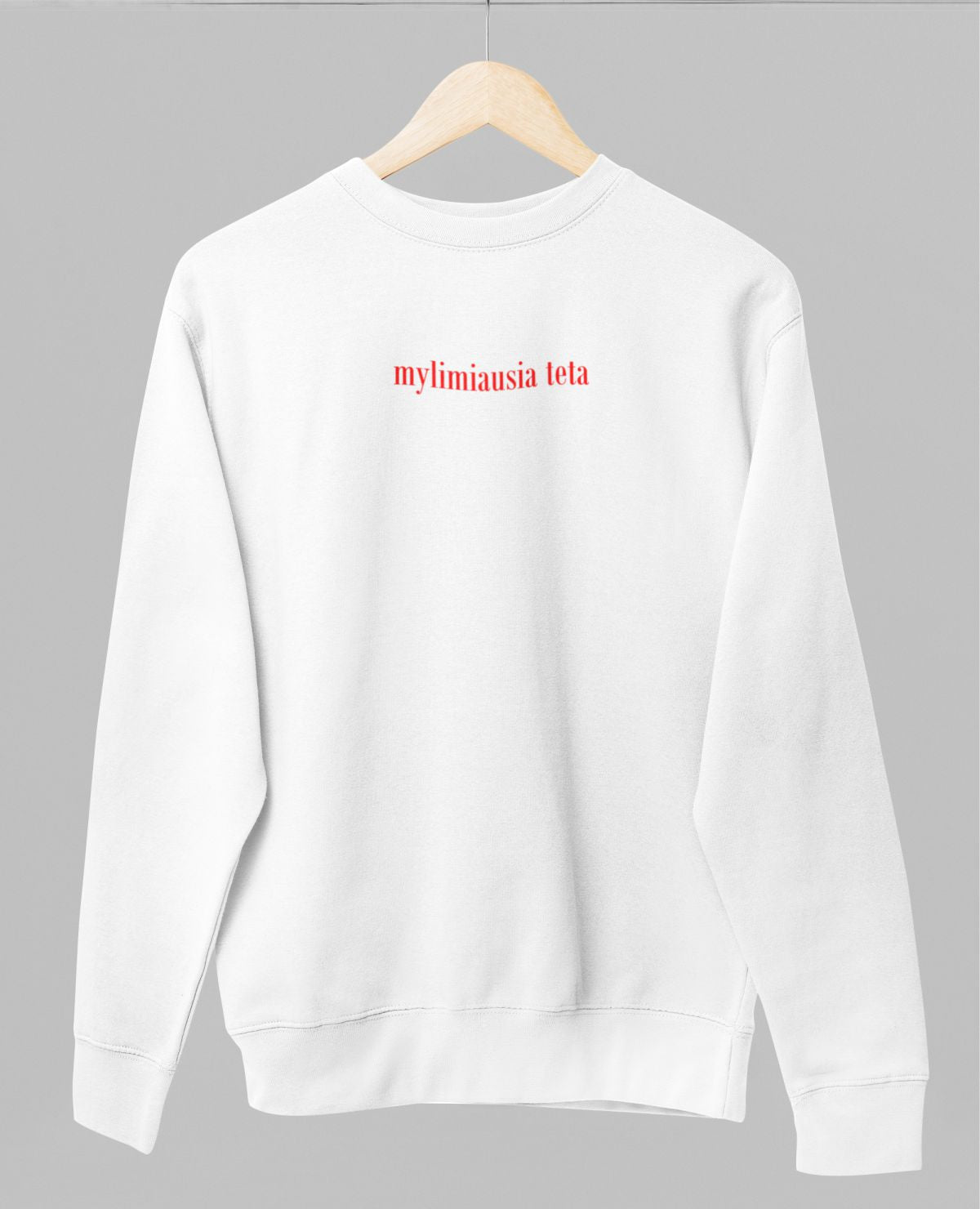 Baltas džemperis be gobtuvo "Mylimiausia teta"