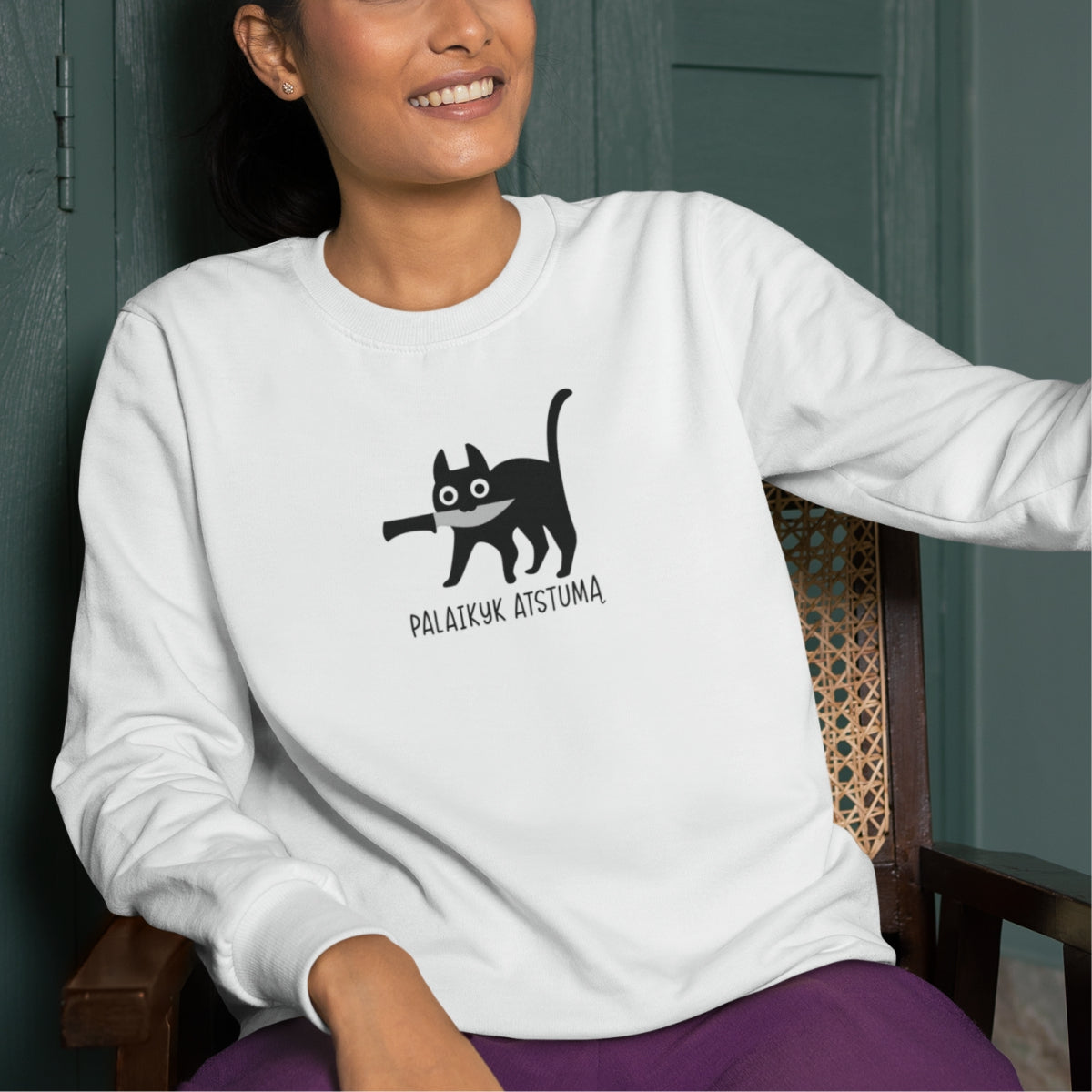 Baltas džemperis be gobtuvo "Palaikyk atstumą"
