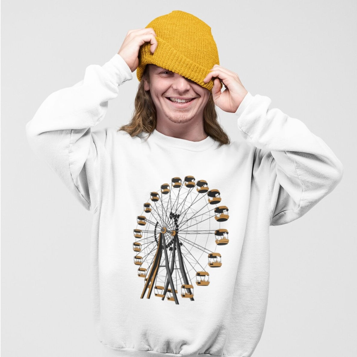 Baltas UNISEX džemperis be gobtuvo "Spalvingas Pripetės ratas"