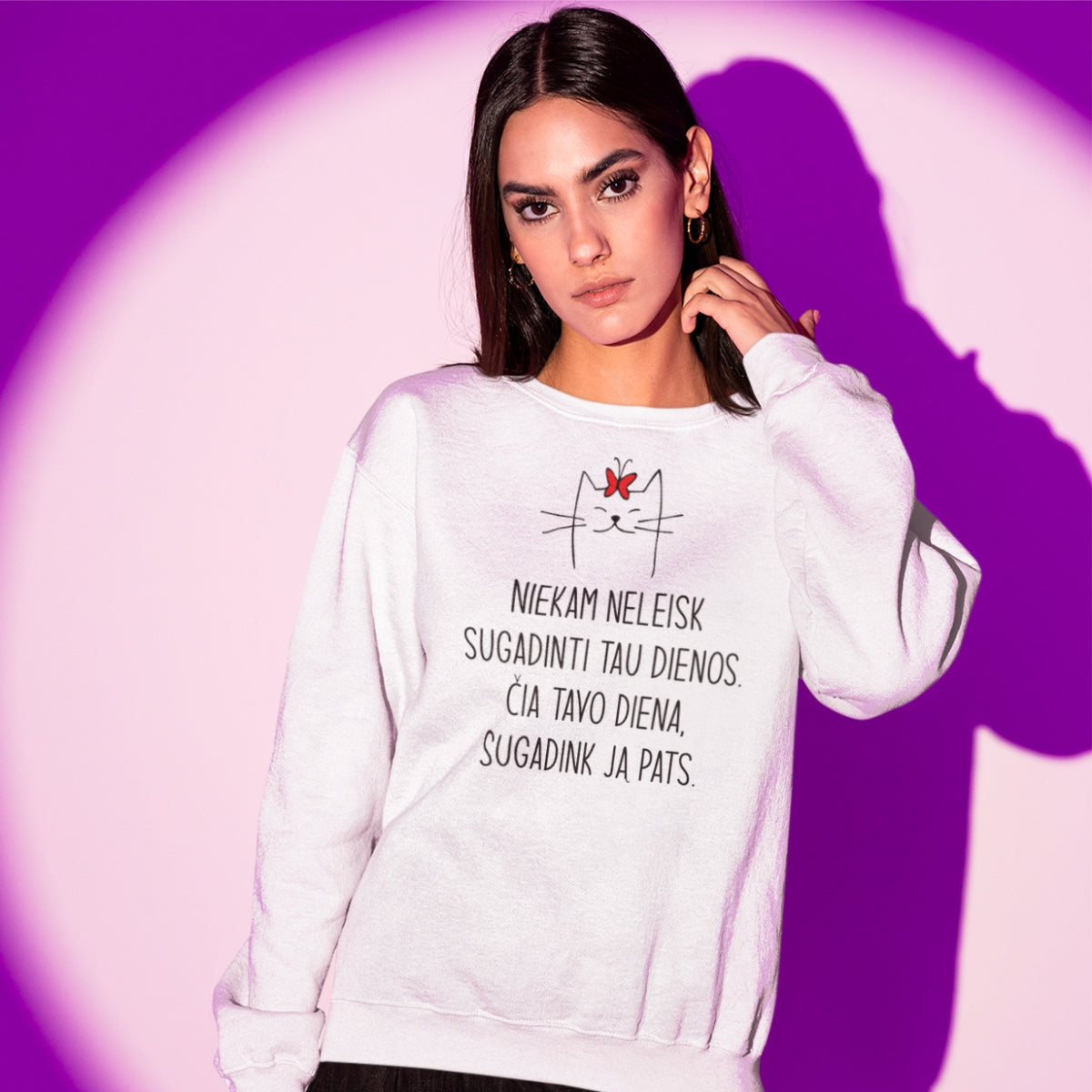 Baltas džemperis be gobtuvo "Sugadink ją pats"