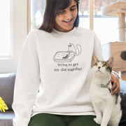 Baltas džemperis be gobtuvo "Trying to get my shit together"