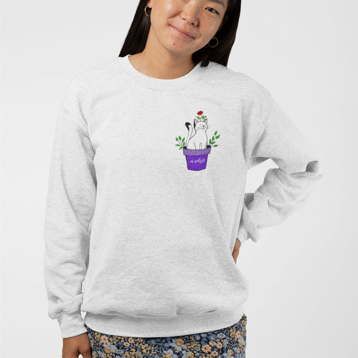 Baltas UNISEX džemperis be gobtuvo "Aš gėlytė"