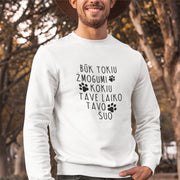Baltas UNISEX džemperis be gobtuvo "Būk tokiu žmogumi"