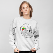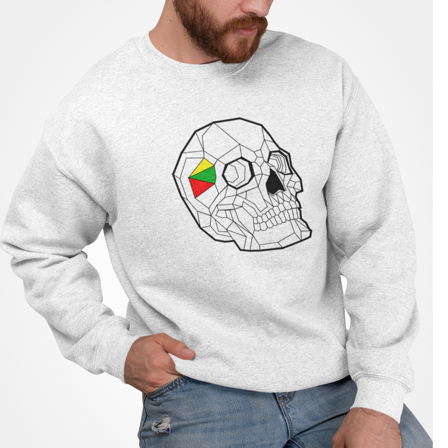 Baltas UNISEX džemperis be gobtuvo "Geometrinė kaukolė"