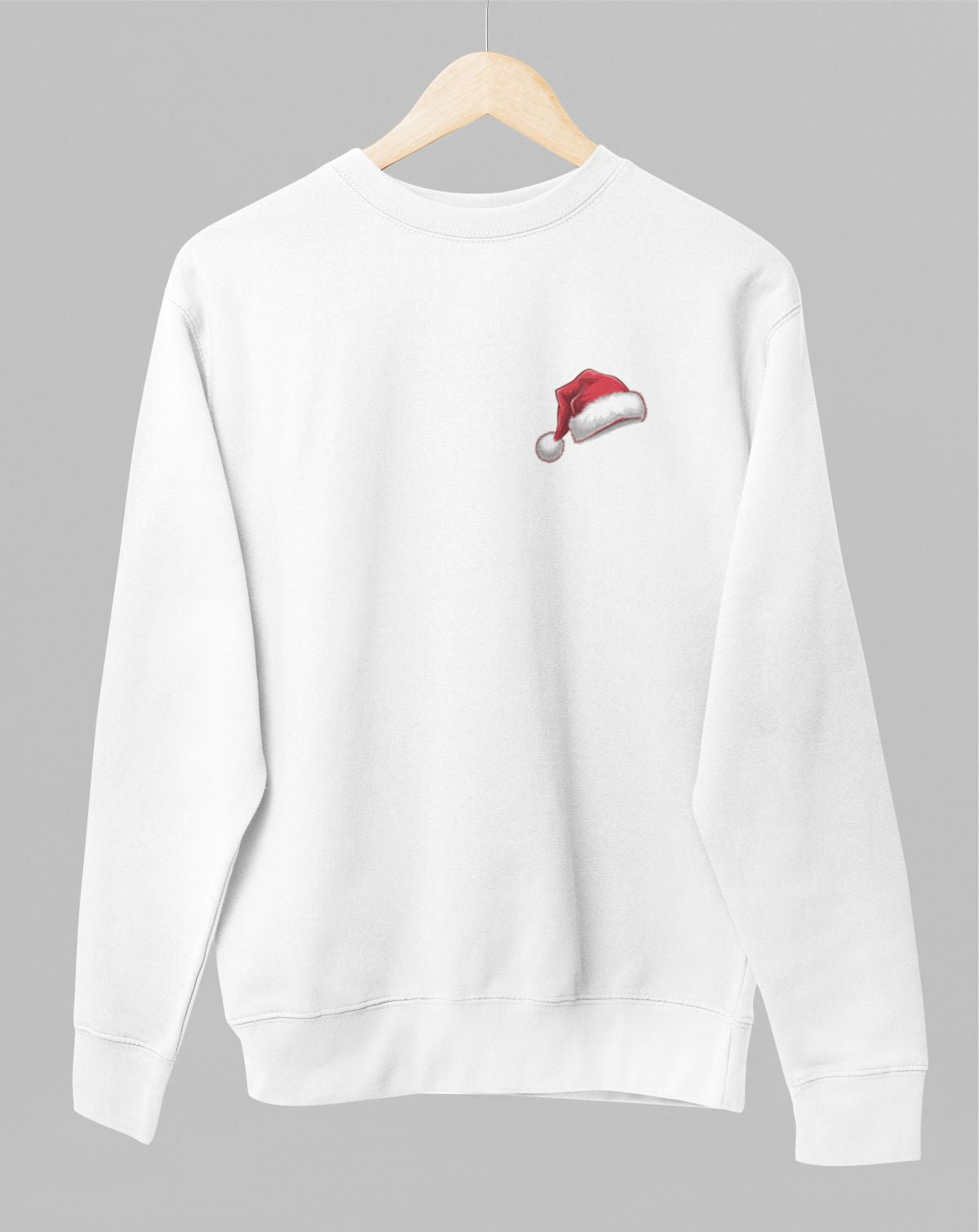 Baltas UNISEX džemperis be gobtuvo "Kalėdinis kepuriukas"