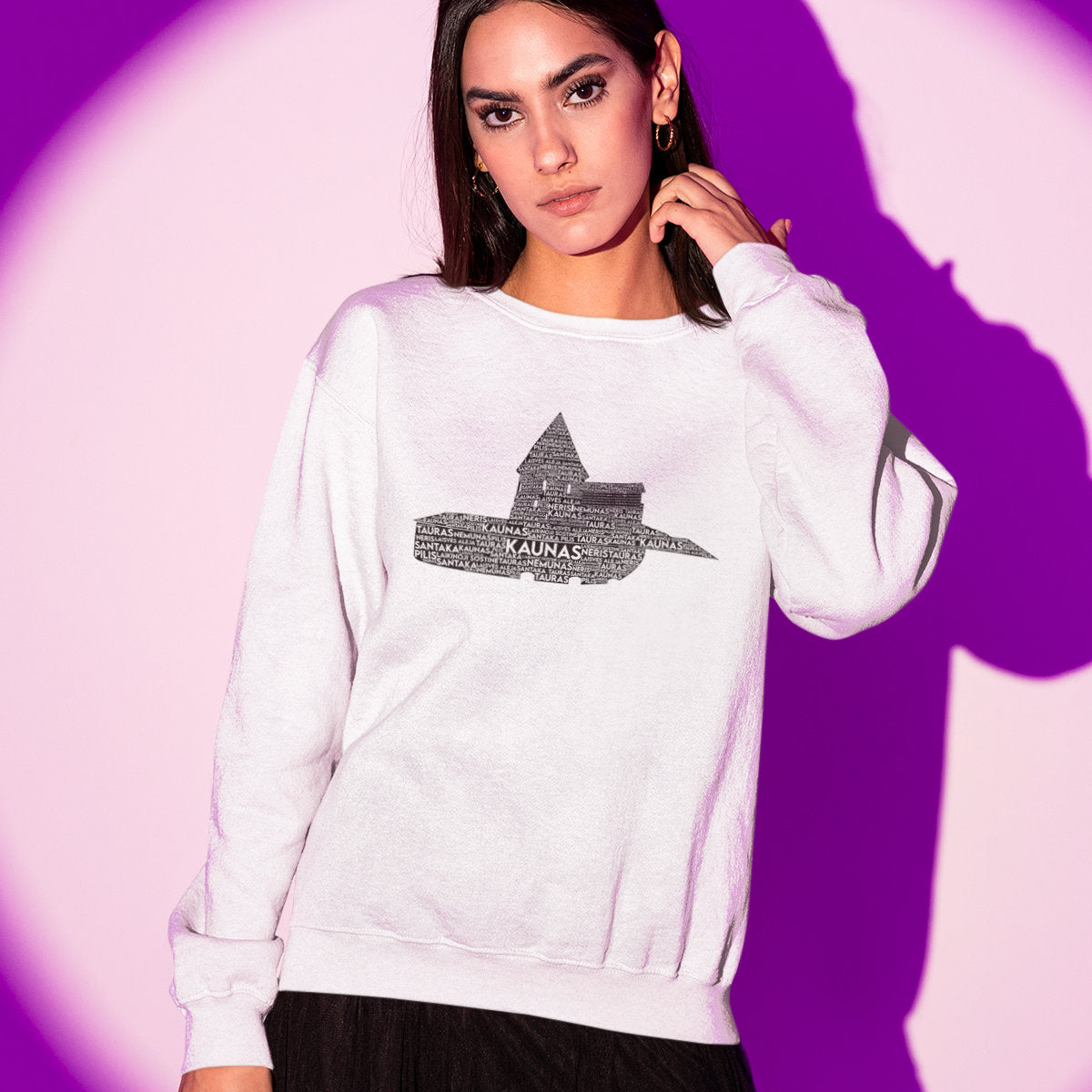 Baltas UNISEX džemperis be gobtuvo "Kauno frazės"