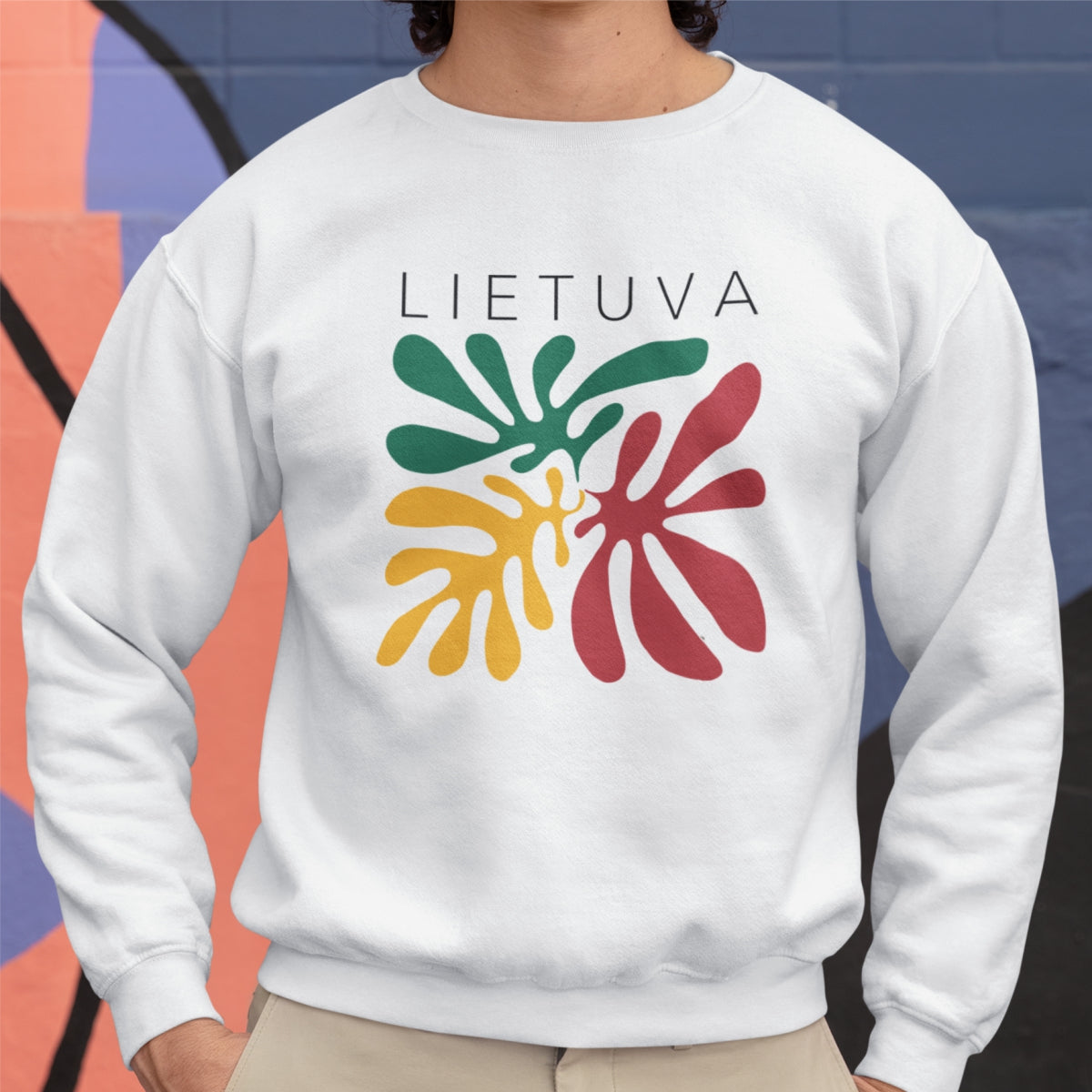 Baltas UNISEX džemperis be gobtuvo "Lietuvos spalvos"