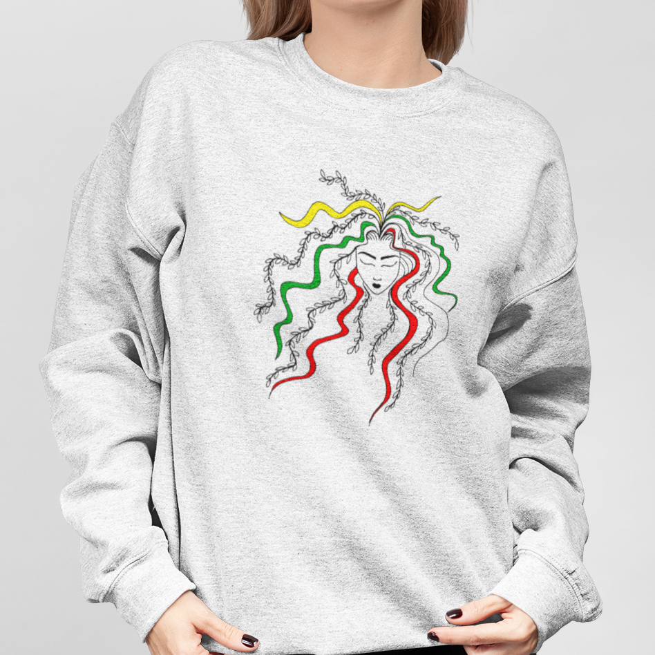 Baltas UNISEX džemperis be gobtuvo "Miško deivė Medeina"