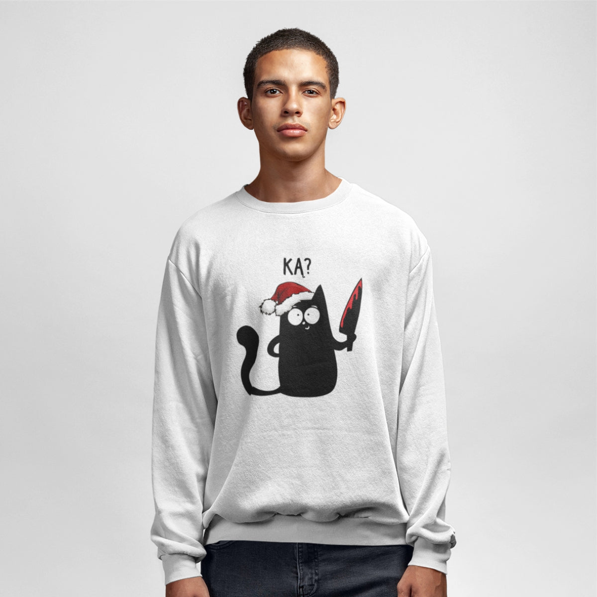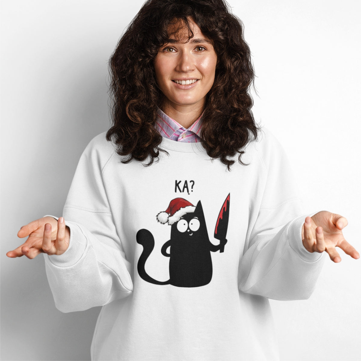 Baltas UNISEX kalėdinis džemperis be gobtuvo "Ką katiniukas"