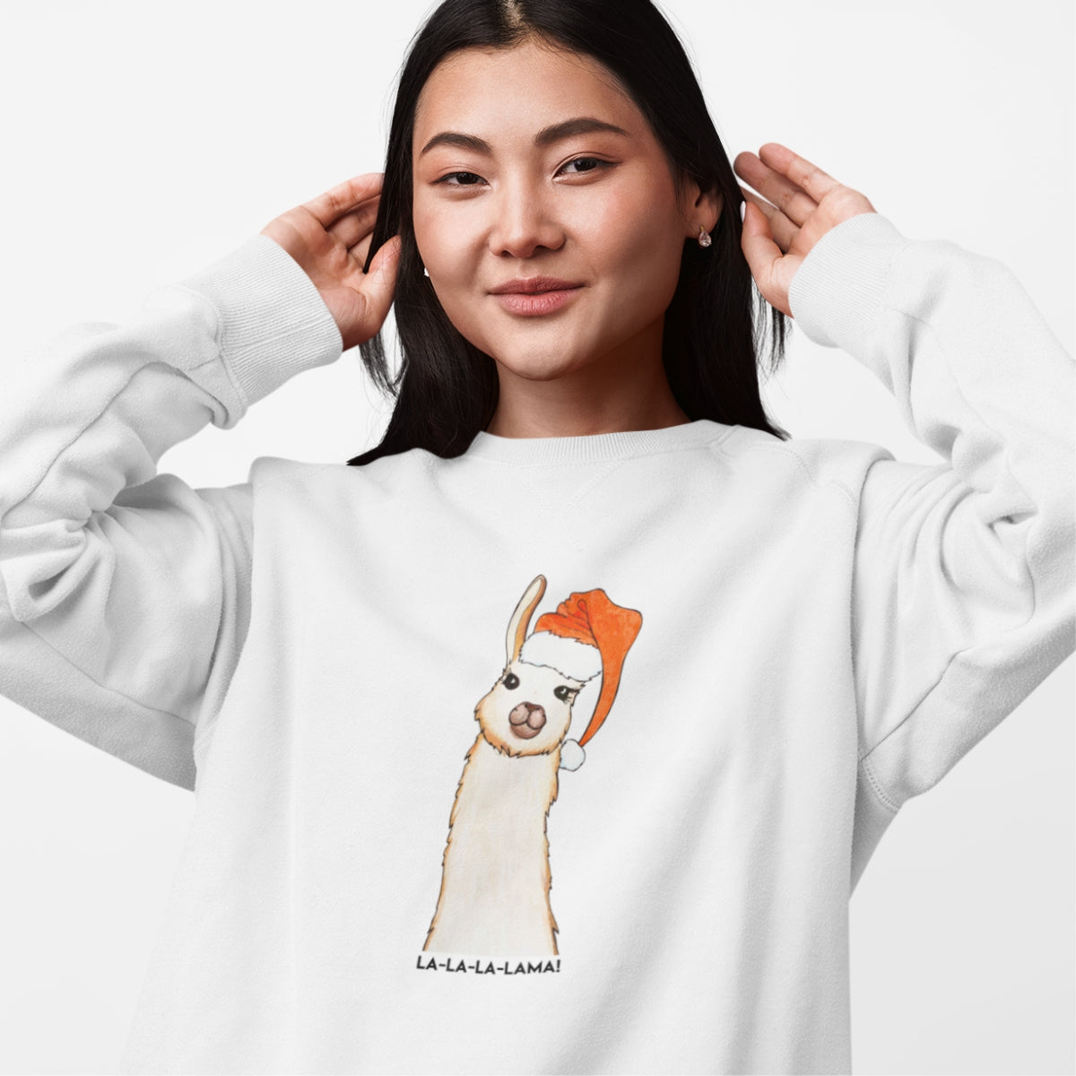 Baltas UNISEX kalėdinis džemperis be gobtuvo "La la lama"