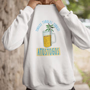 Baltos spalvos UNISEX džemperis be gobtuvo "Tobulos atostogos"