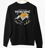 Juodas UNISEX džemperis be gobtuvo "Find me in the mountains"