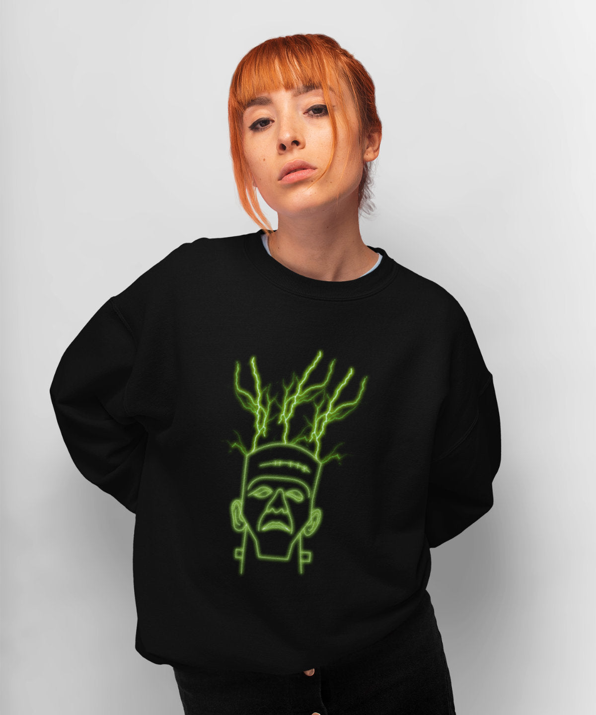 Juodas UNISEX džemperis be gobtuvo "Frankenšteinas"