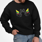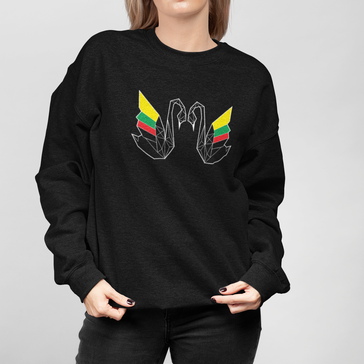Juodas UNISEX džemperis be gobtuvo "Geometrinės gulbės"