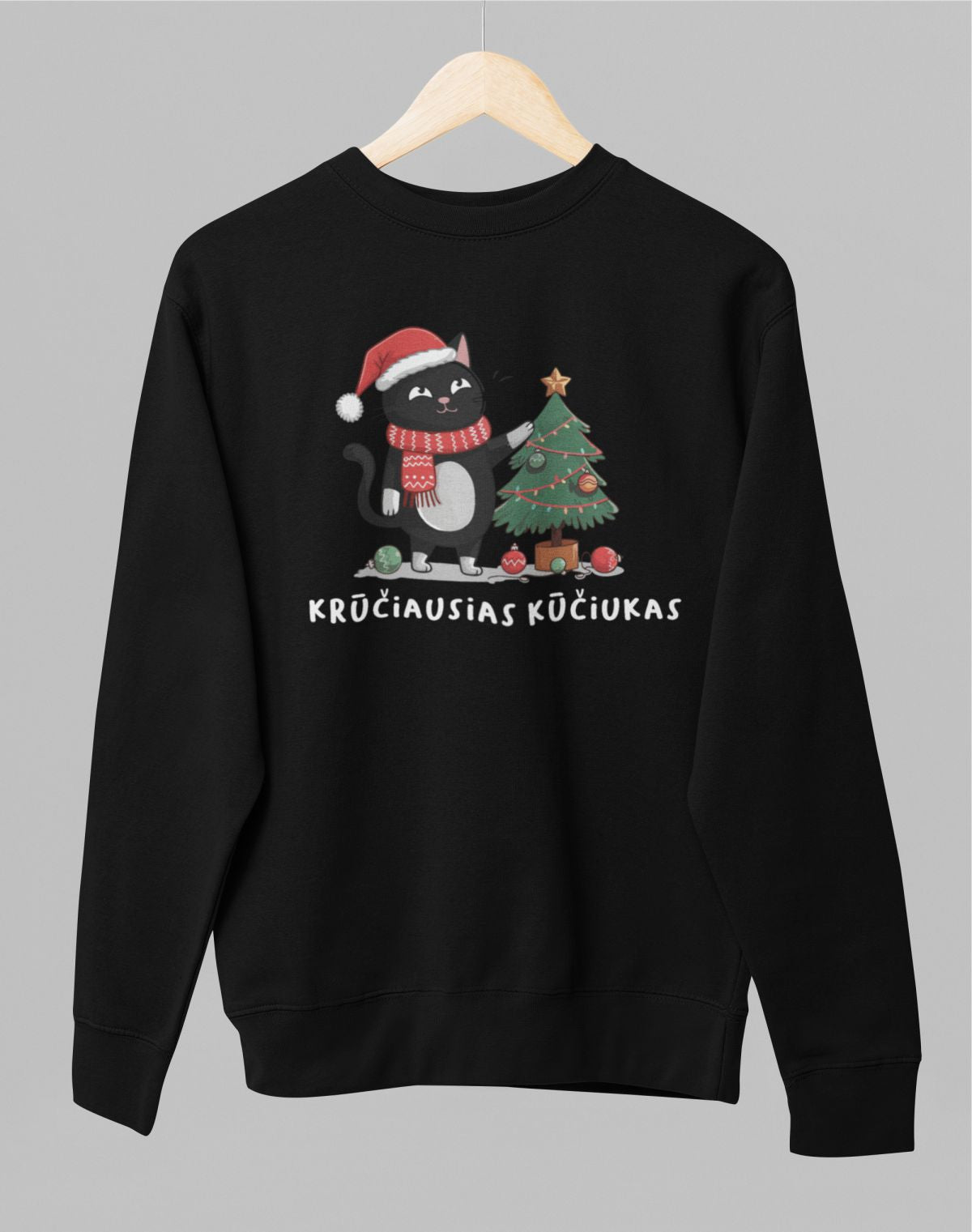 Juodas UNISEX džemperis be gobtuvo "Krūčiausias kūčiukas"
