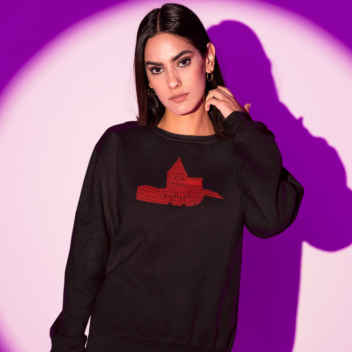 Juodas UNISEX džemperis be gobtuvo "Liepsnojančios Kauno frazės"
