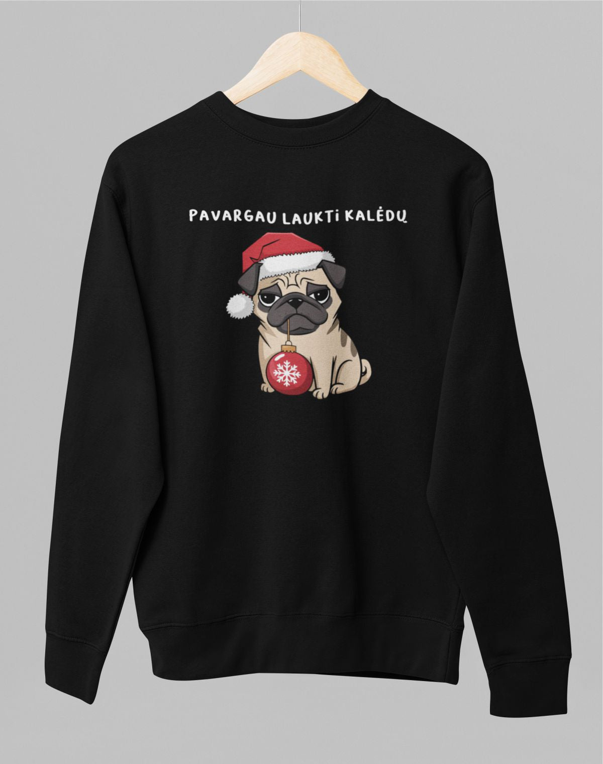 Juodas UNISEX džemperis be gobtuvo "Pavargau laukti Kalėdų"