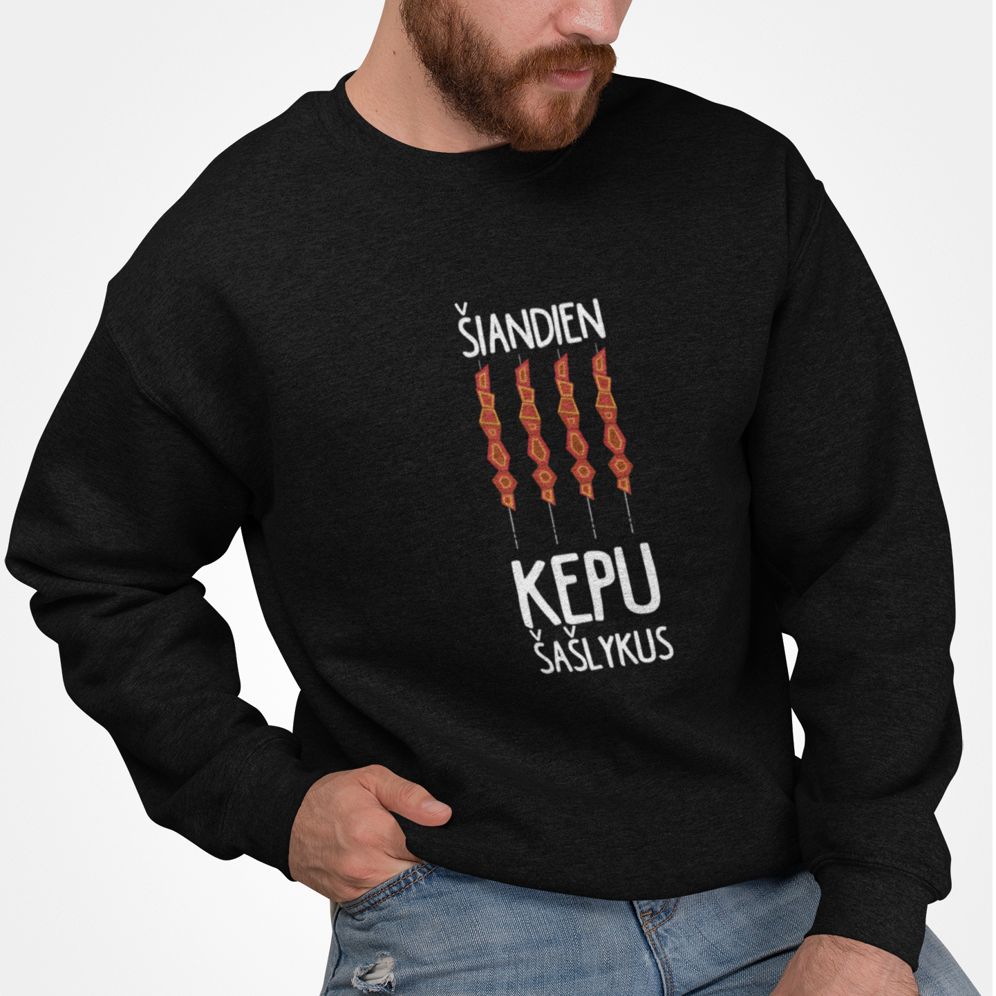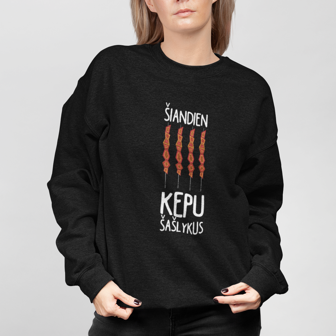 Juodas UNISEX džemperis be gobtuvo "Šašlykai"