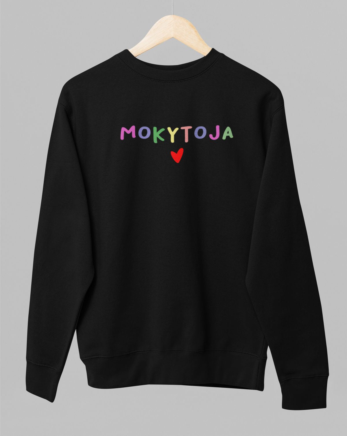 Juodas UNISEX džemperis be gobtuvo "Spalvota mokytoja"