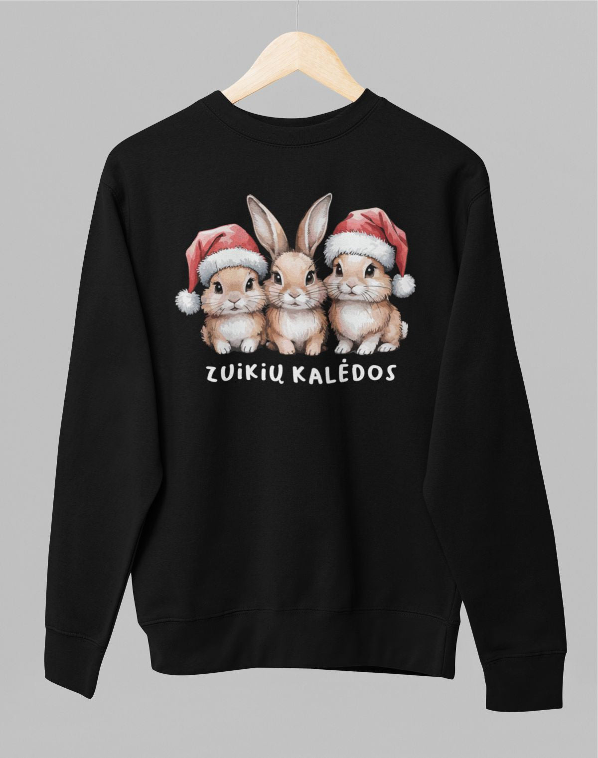 Juodas UNISEX džemperis be gobtuvo "Zuikių Kalėdos"