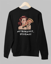 Juodas UNISEX džemperis be kapišono "Netrukdykit, užsiėmus"