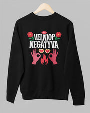 Juodas UNISEX džemperis be kapišono "Velniop negatyvą"