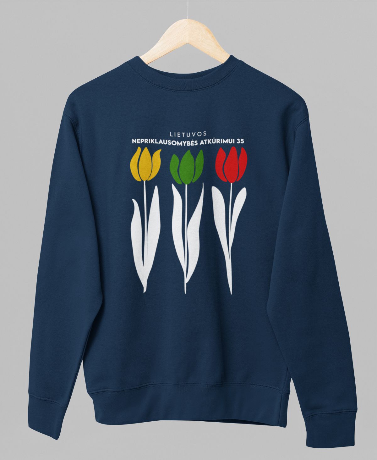 Mėlynas džemperis be gobtuvo "Nepriklausomybės atkūrimui 35"