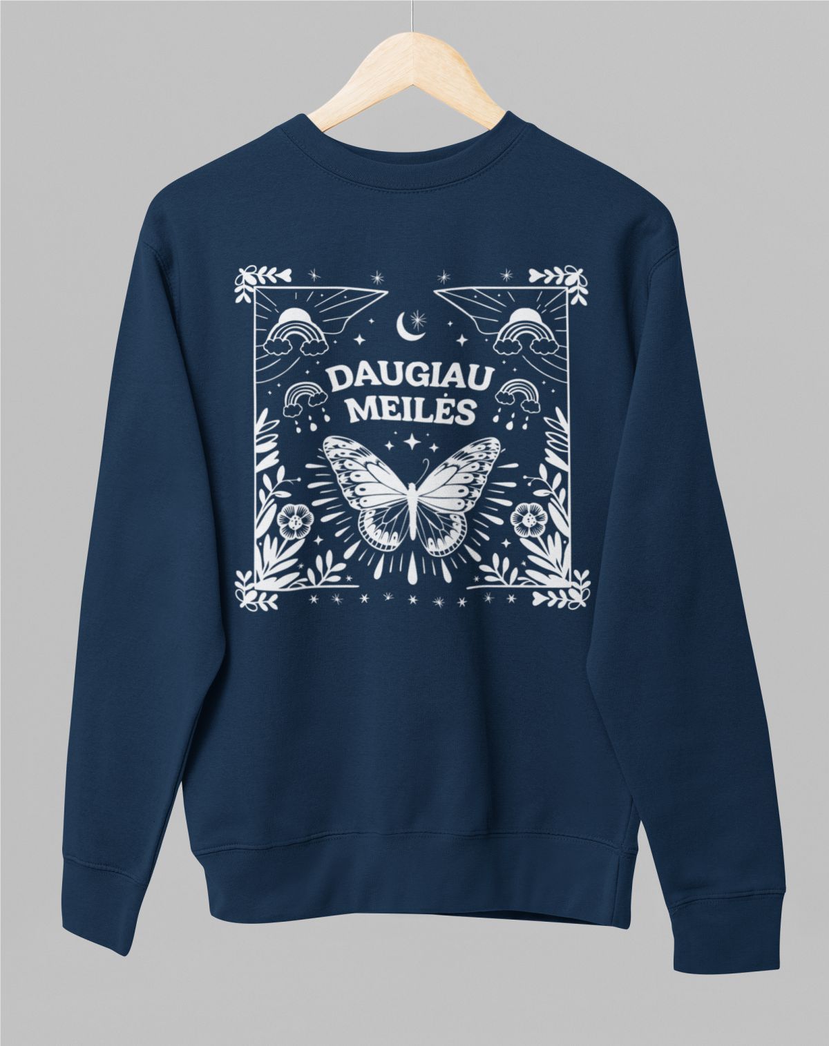 Mėlynas UNISEX džemperis be kapišono "Daugiau meilės visiems"