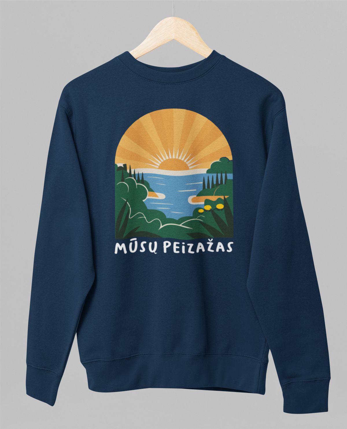 Mėlynas UNISEX džemperis be kapišono "Mūsų peizažas"