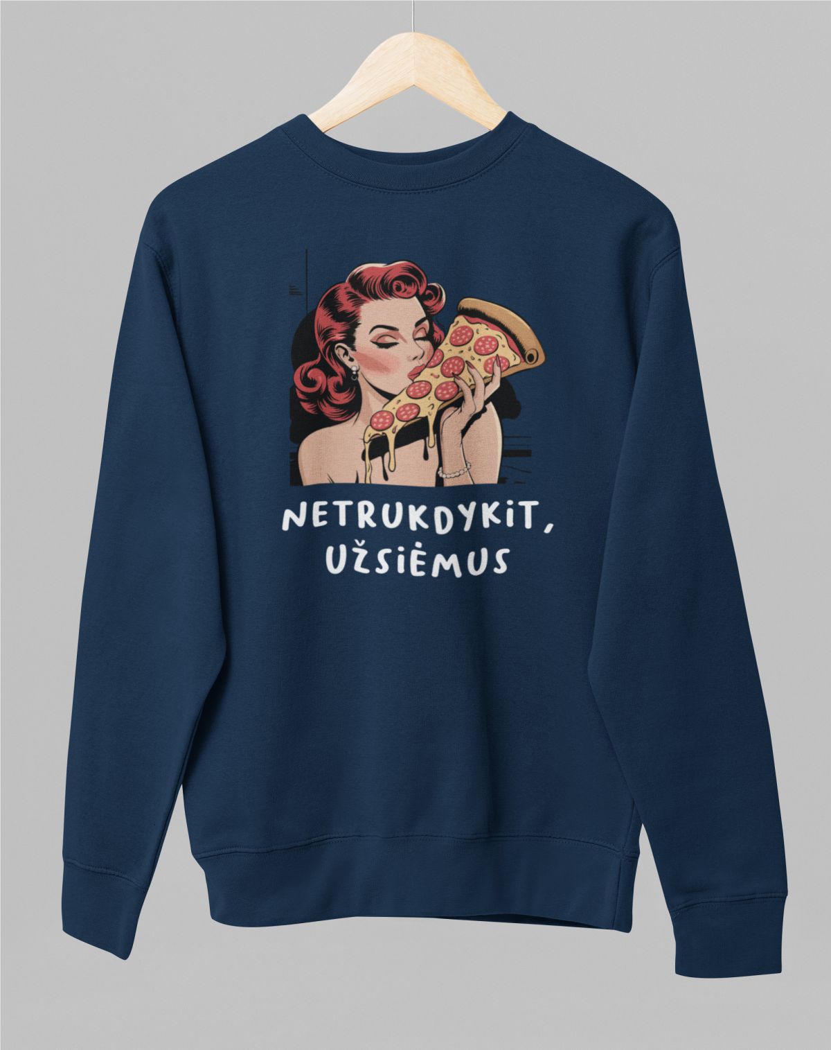 Mėlynas UNISEX džemperis be kapišono "Netrukdykit, užsiėmus"