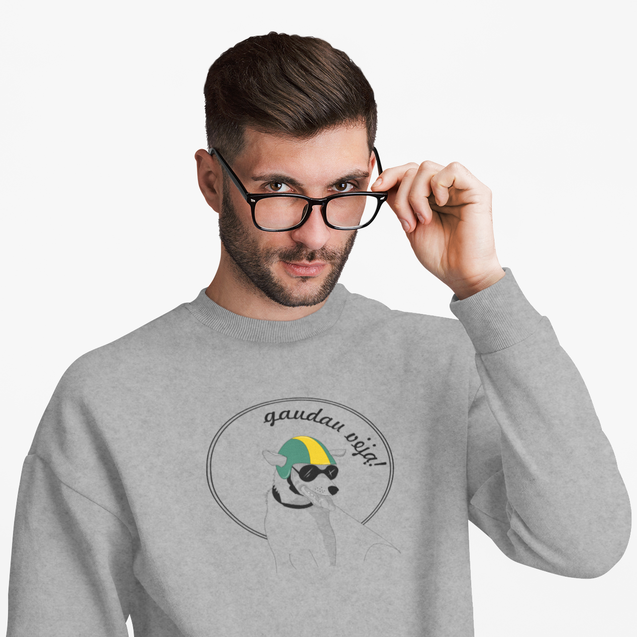 Pilkas džemperis be gobtuvo "Gaudau vėją"