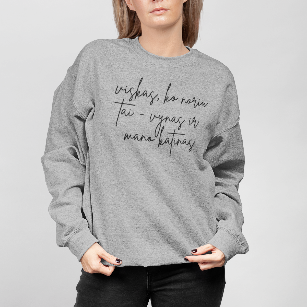 Pilkas džemperis be gobtuvo "Viskas, ko noriu"