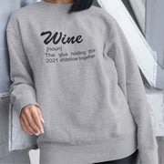 Pilkas džemperis be gobtuvo "Wine is the glue"