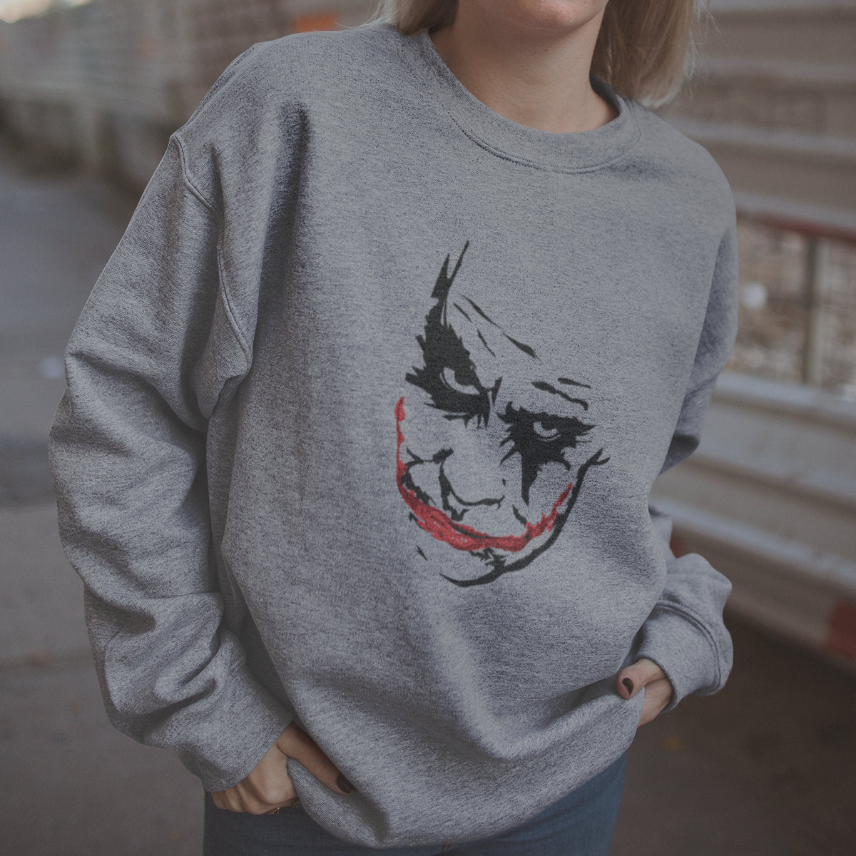 Pilkas melanžinis UNISEX džemperis be gobtuvo "Džokeris"