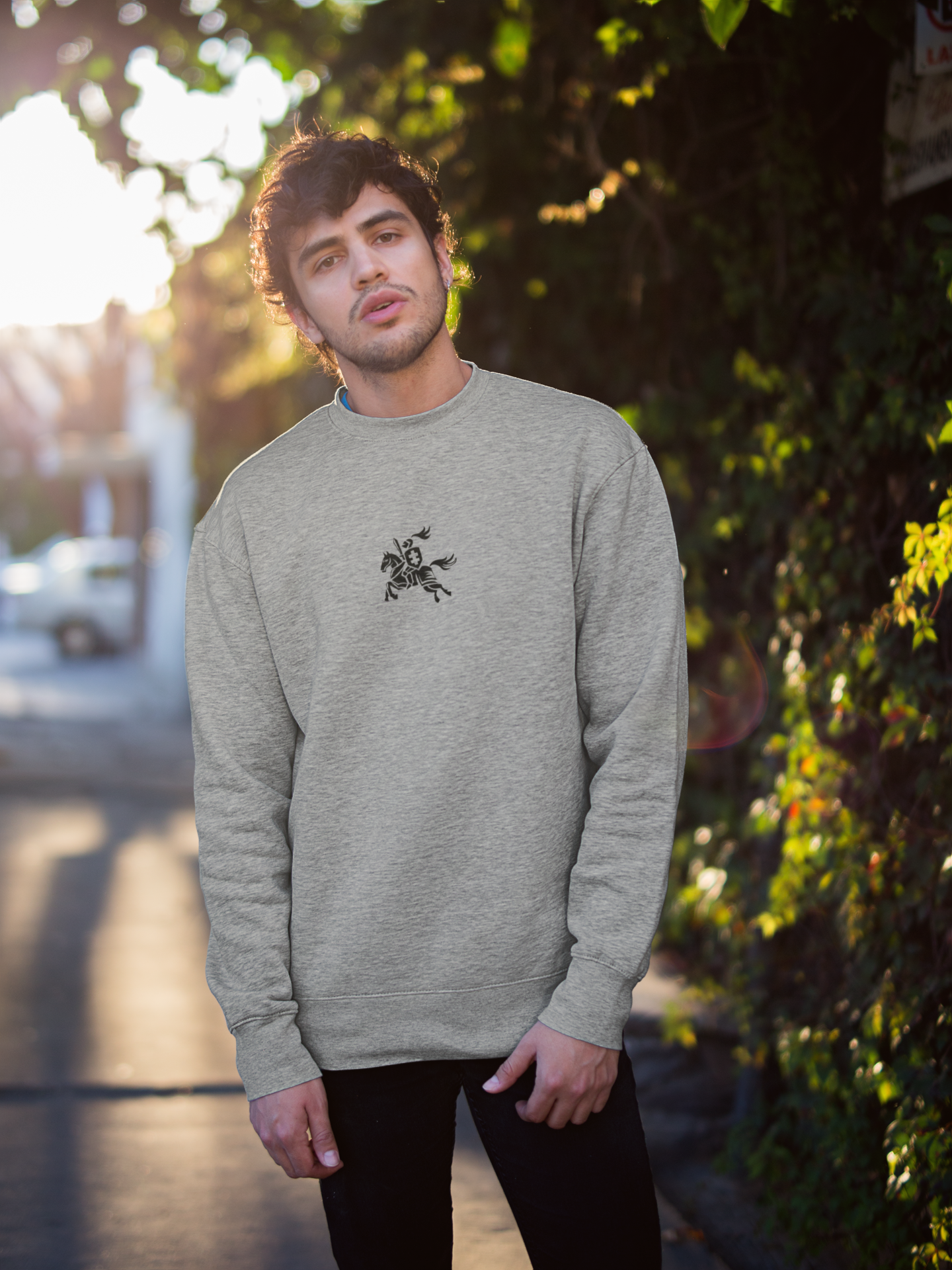 Pilkas melanžinis UNISEX džemperis "Vienspalvis vytis be užrašo baltas" PASKUTINIAI VIENETAI (XXL dydis)