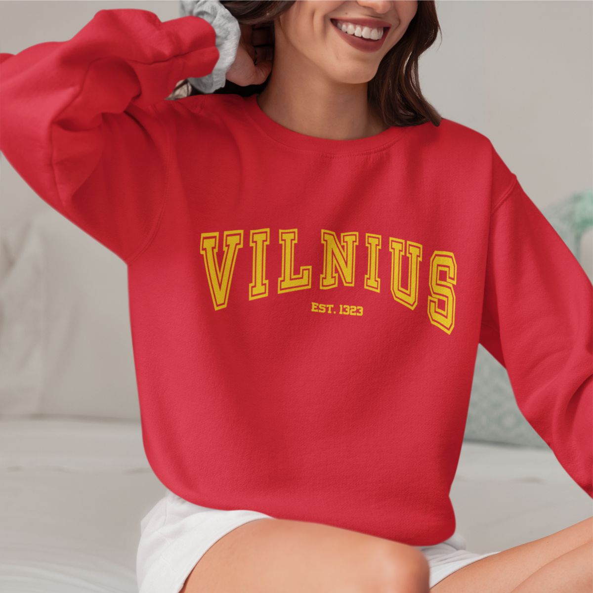 Raudonas džemperis be gobtuvo "Vilnius est"
