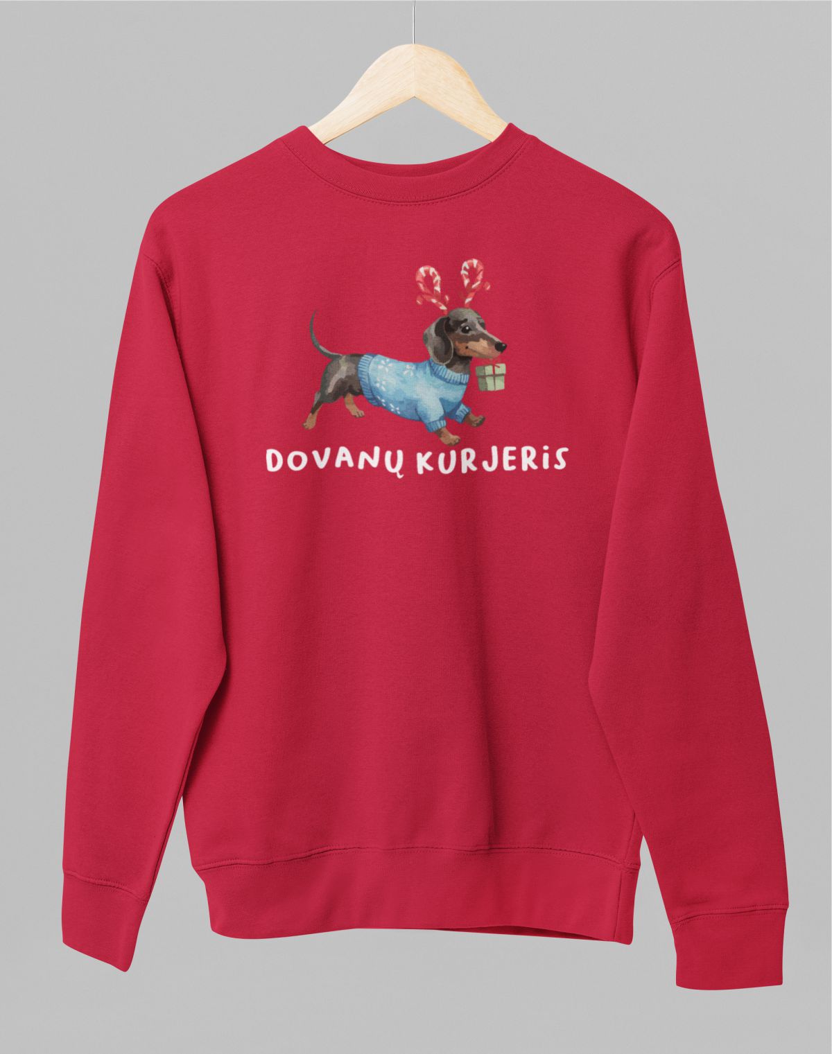 Raudonas UNISEX džemperis be gobtuvo "Dovanų kurjeris"